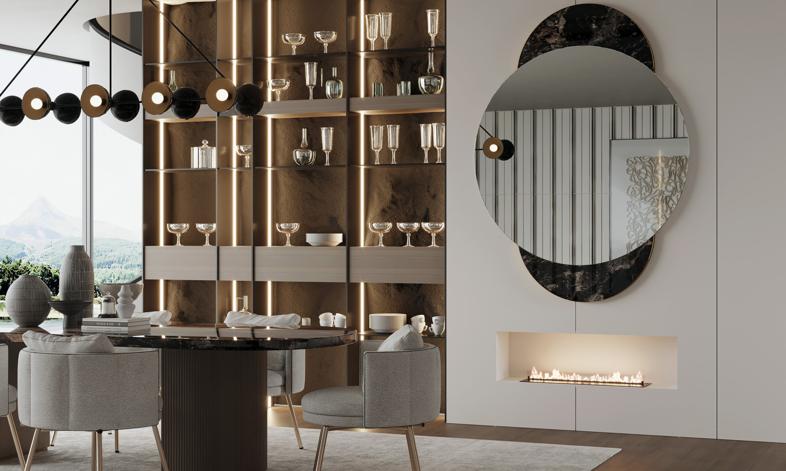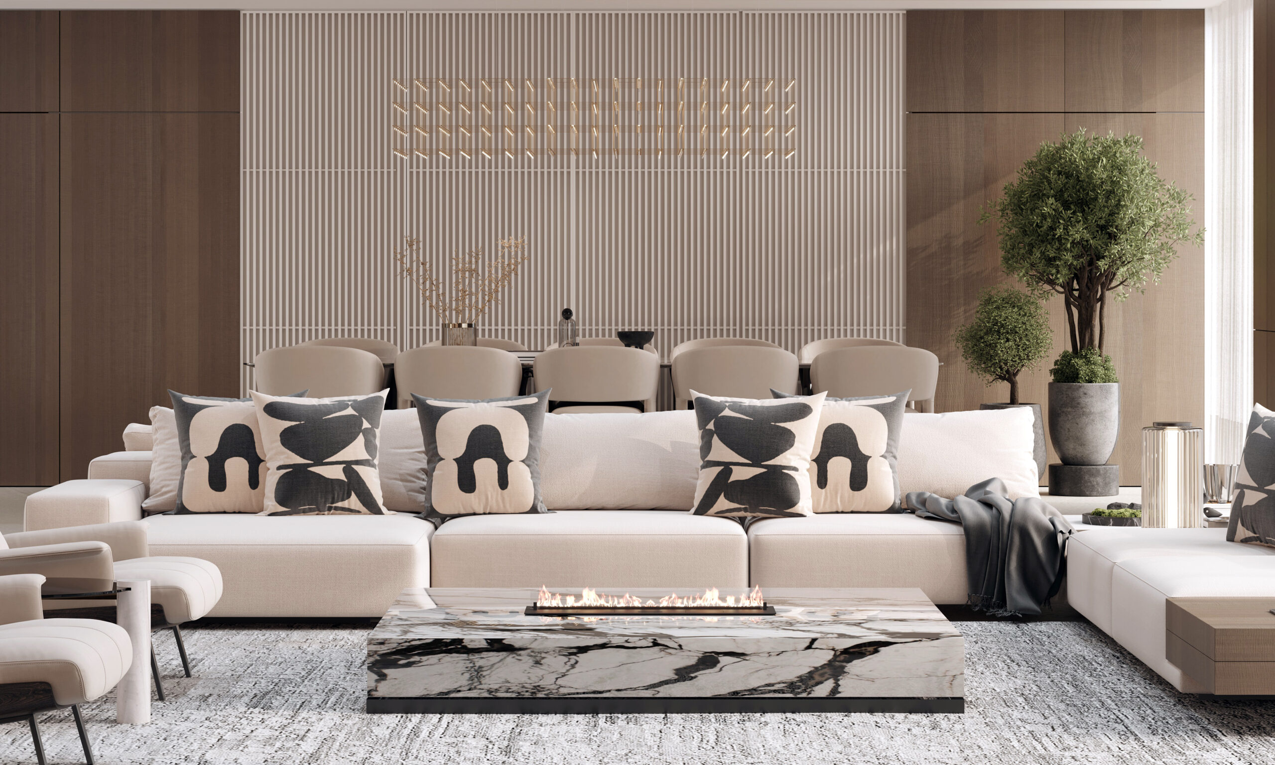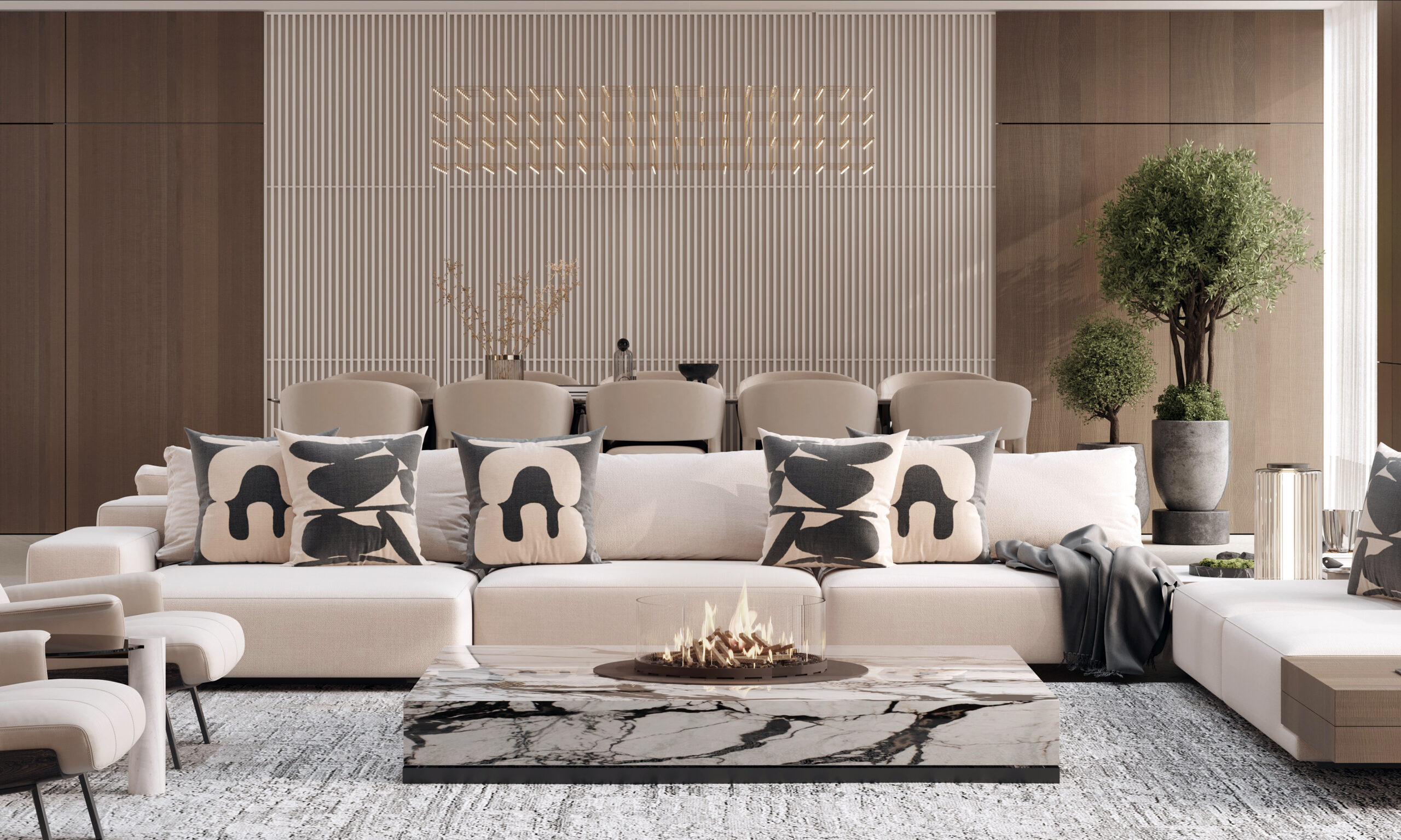 Cada material foi escolhido para criar continuidade — texturas suaves, superfícies naturais e detalhes que tornam os espaços leves e intemporais. O design revela-se na harmonia entre formas puras e materiais nobres, transformando cada ambiente numa experiência que se sente e se vive.