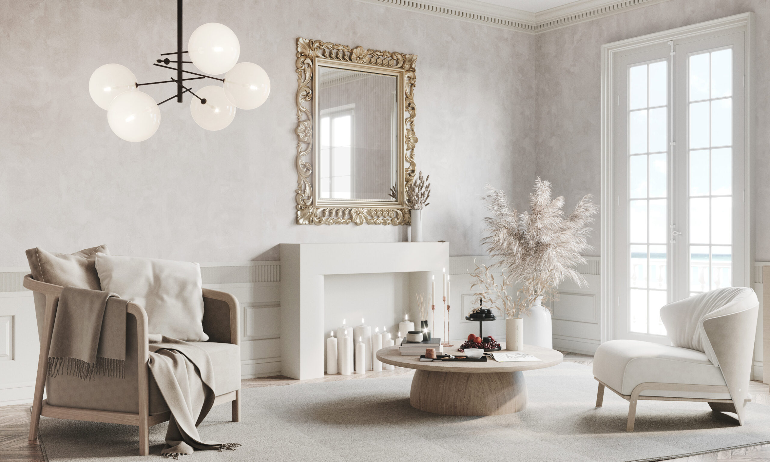 A composição entre branco, bege, castanho e preto cria uma dança subtil de contrastes, em que a clareza se encontra com a profundidade, e a neutralidade dos tons amplifica a serenidade dos espaços.